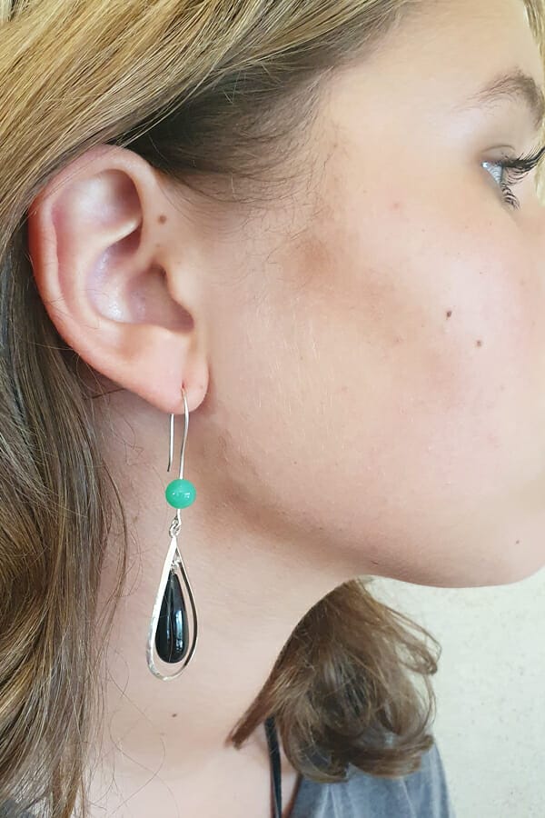 Onyx and chrysoprase silver earrings model