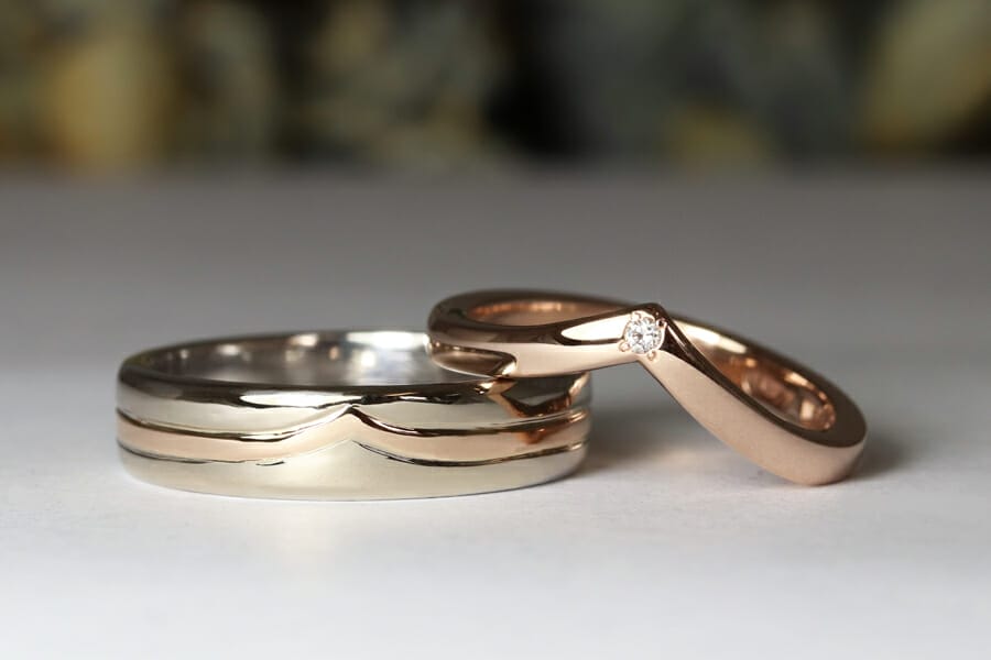 Rose and white gold wedding rings