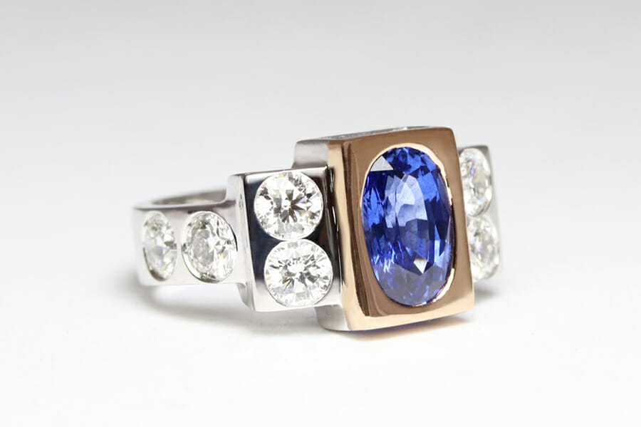 Sapphire and diamonds in platinum and rose gold