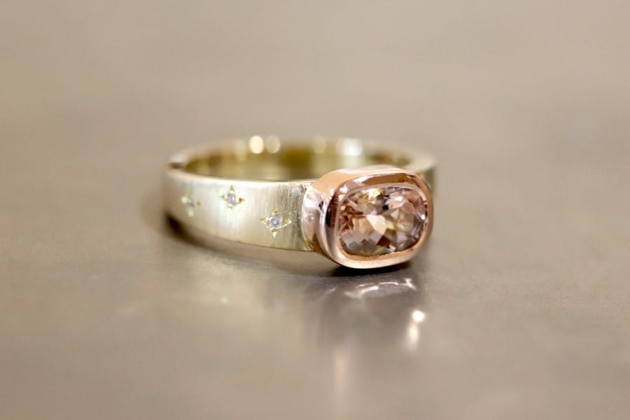 Yellow and rose gold, morganite and diamonds.