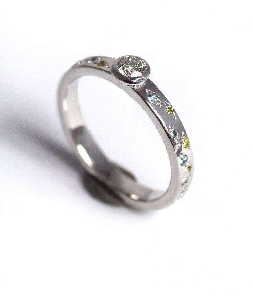 18ct Fairtrade white gold central diamond and yellow sapphires and blue topaz