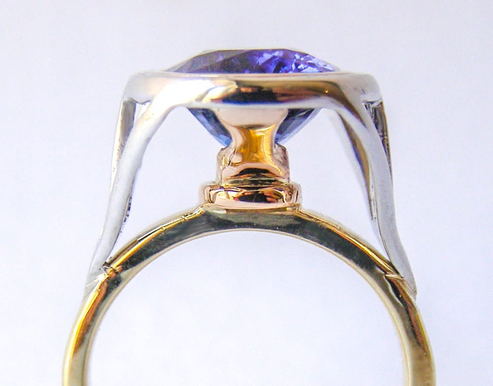 Recycled platinum rose and yellow gold engagement ring with a huge tanzanite 3