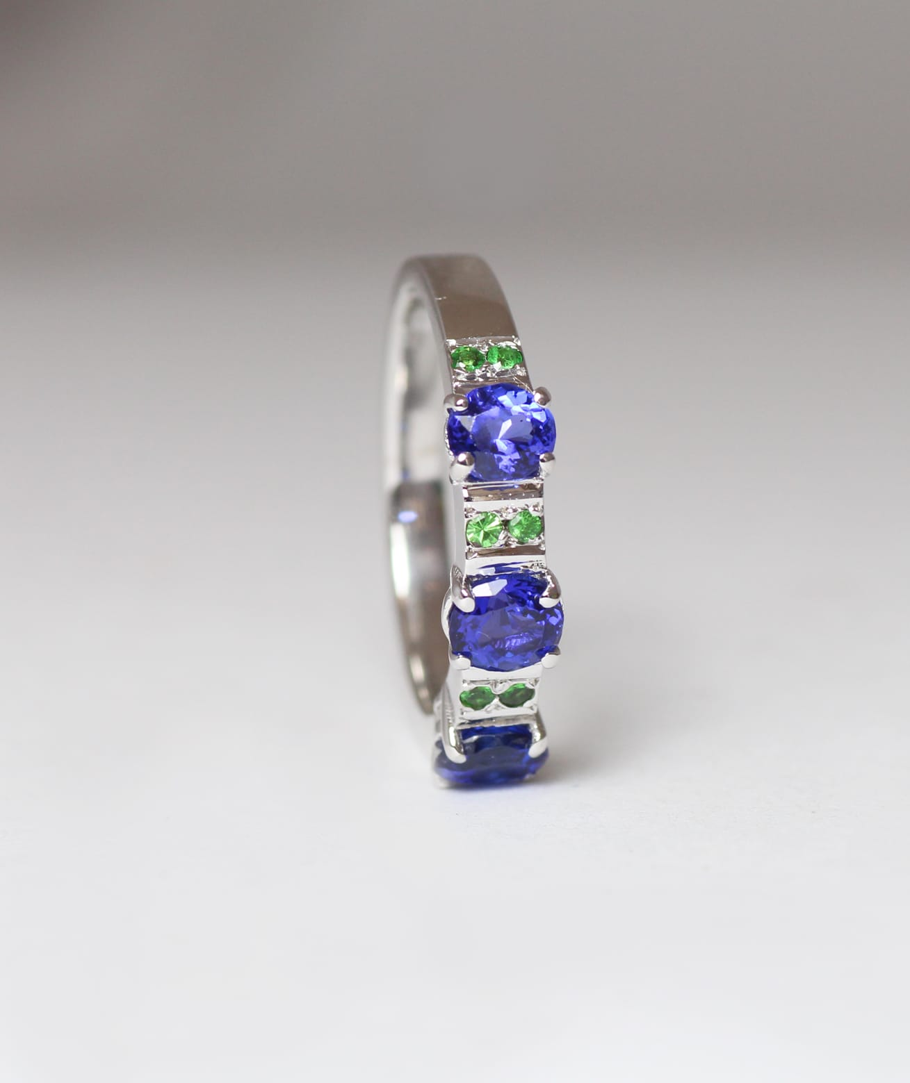 18ct Fairtrade white gold Tanzanite and Tsavorite