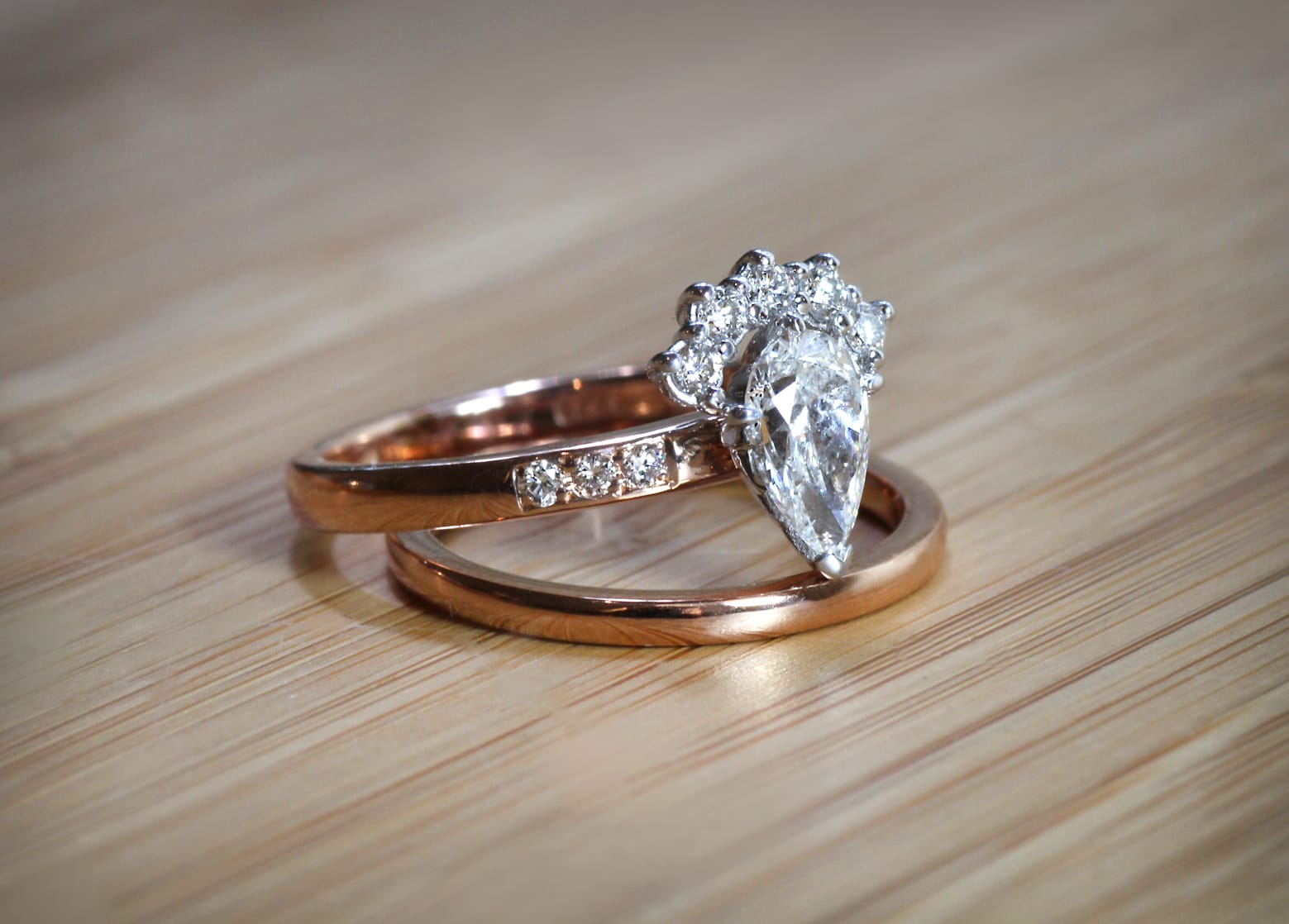 18ct Fairtrade rose and white gold with diamonds wedding set by Zoe Pook Jewellery