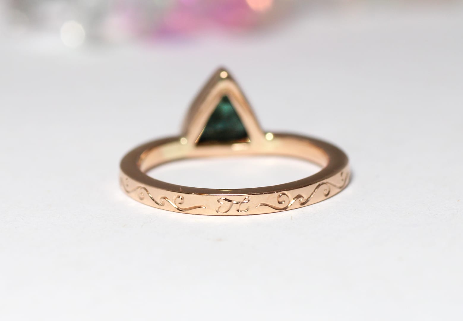 18ct Fairtrade rose gold wedding set with trilliant sapphire