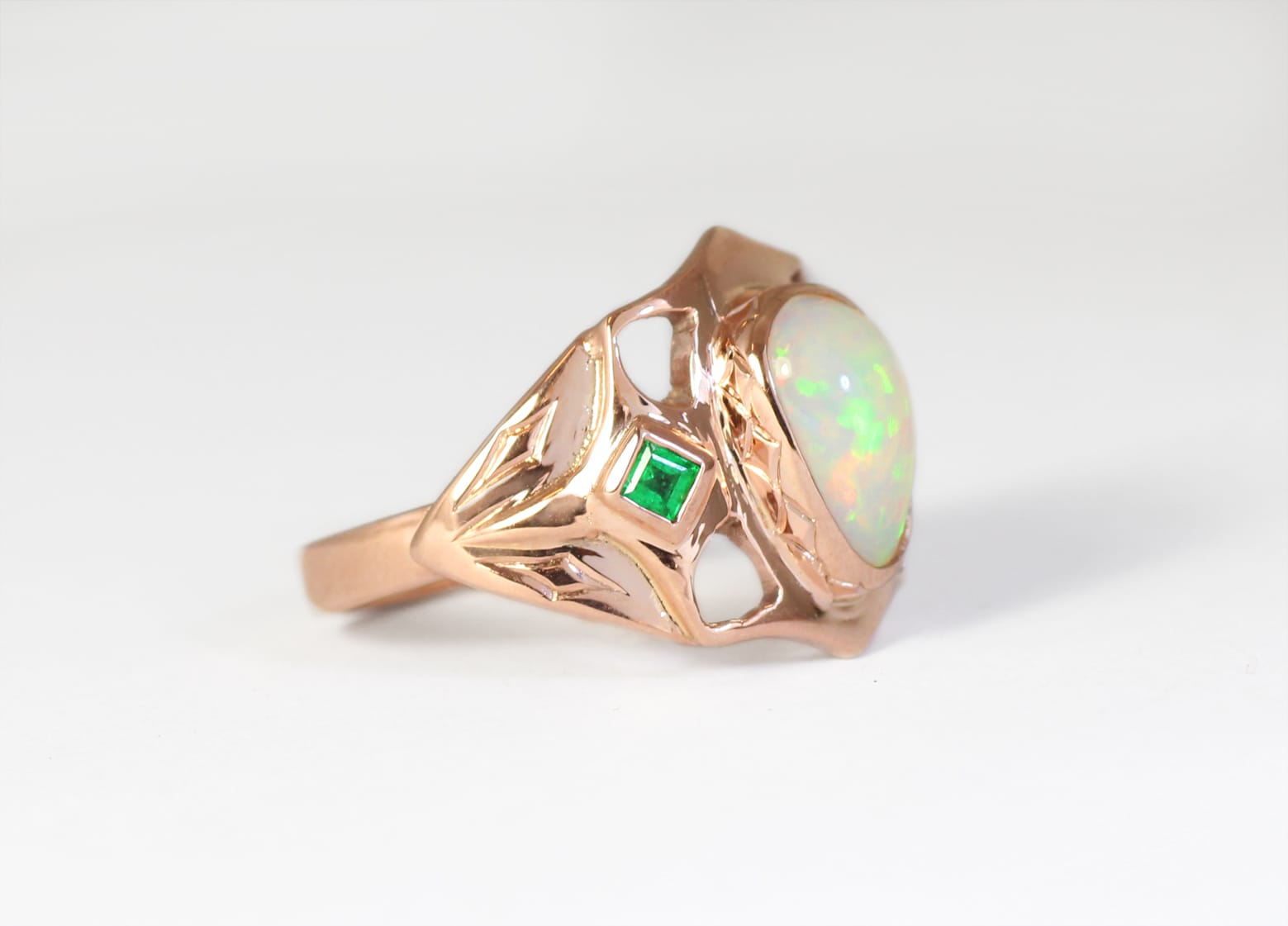 18ct Fairtrade gold opal and emeralds ethiopian design