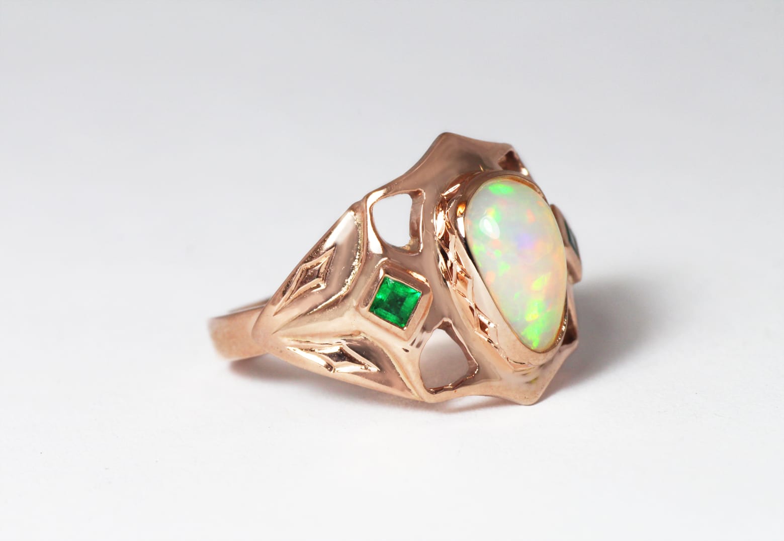 18ct Fairtrade gold opal and emeralds ethiopian design