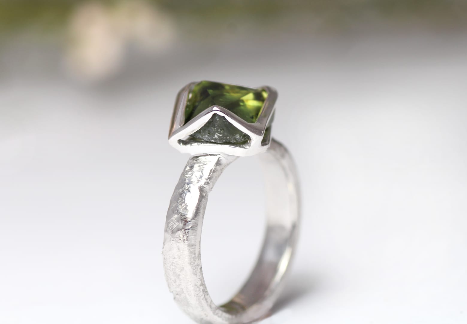 18ct Fairtrade gold with custom cut sapphire