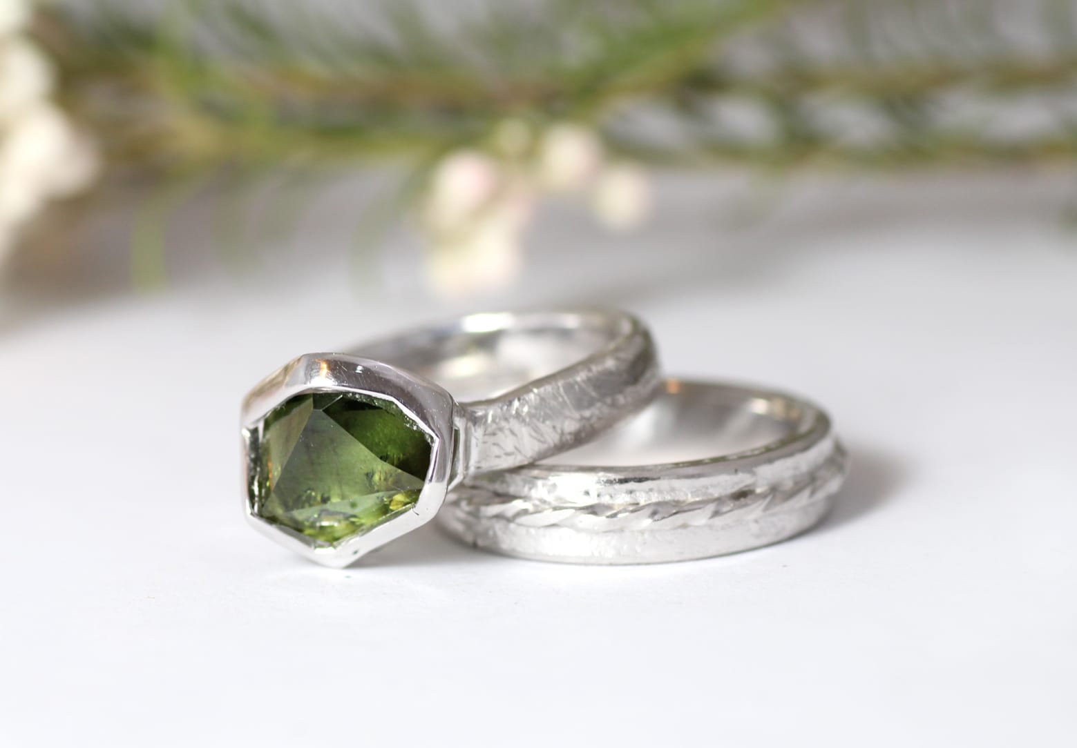 18ct Fairtrade gold with custom cut sapphire by Zoe Pook Jewellery