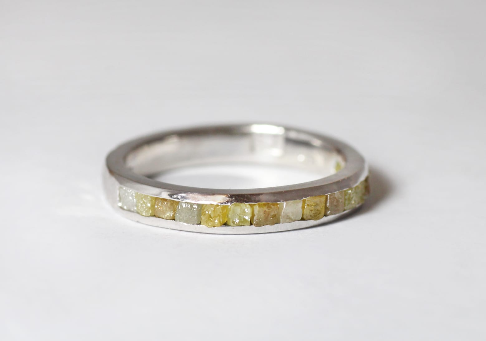 18ct Fairtrade white gold with rough diamonds