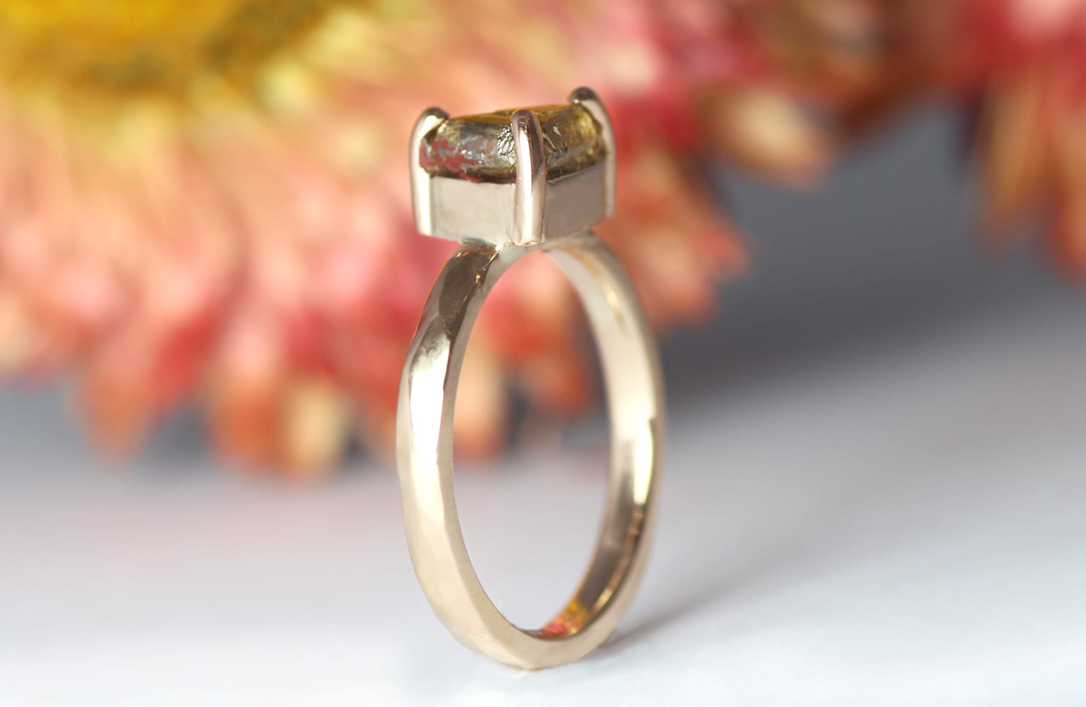 18ct Fairtrade rose gold with rough macle diamond