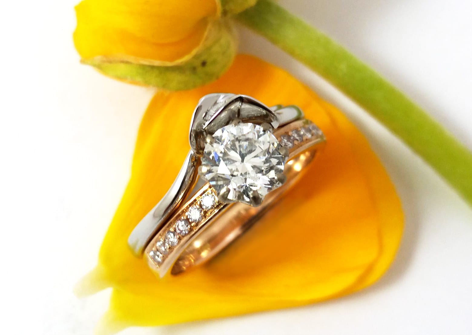 18ct Fairtrade white gold in bespoke lily design