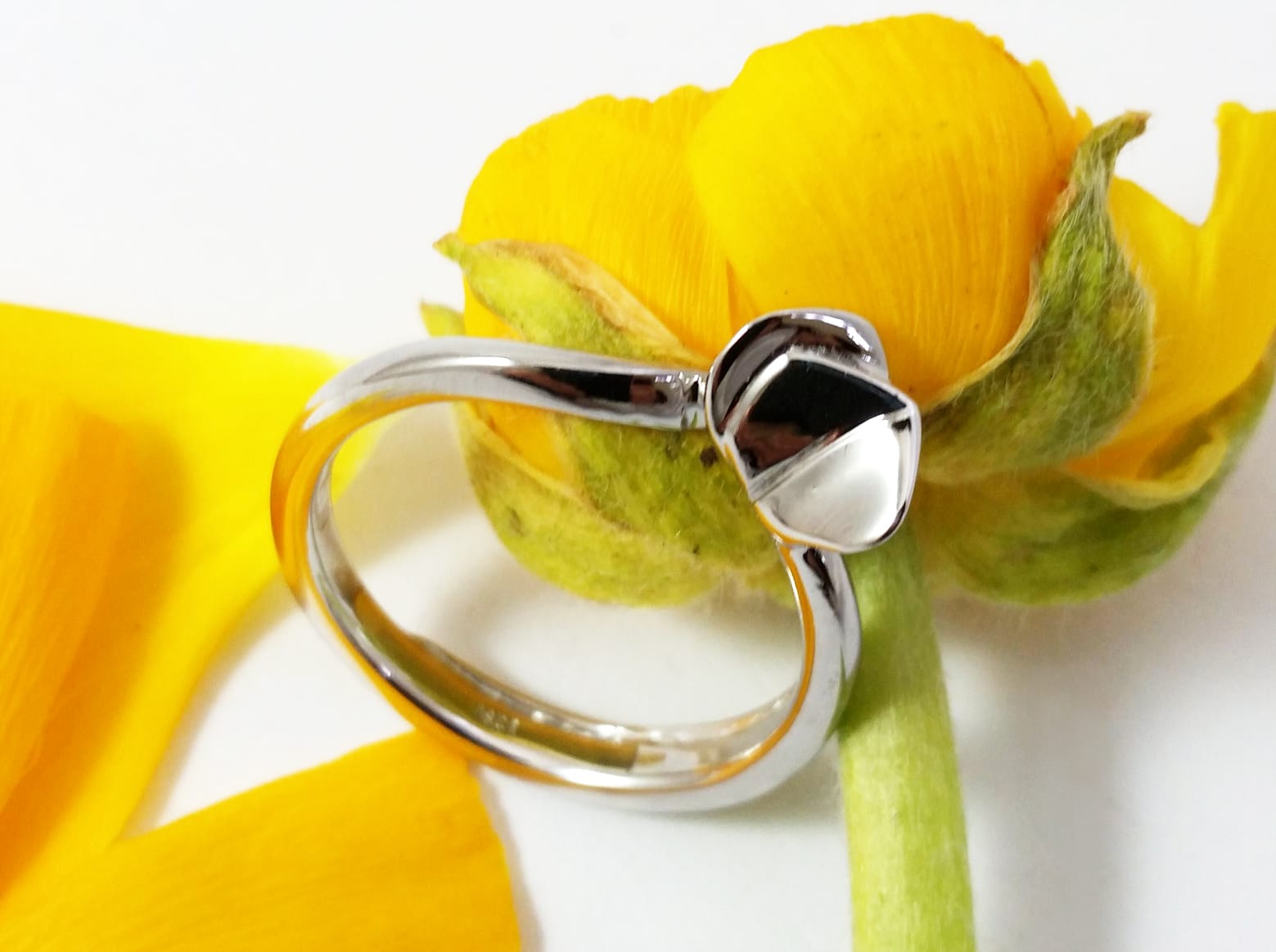 18ct Fairtrade white gold in bespoke lily design