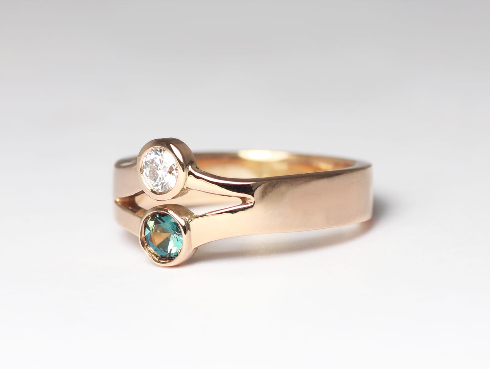 18ct Fairtrade gold with diamond and alexandrite