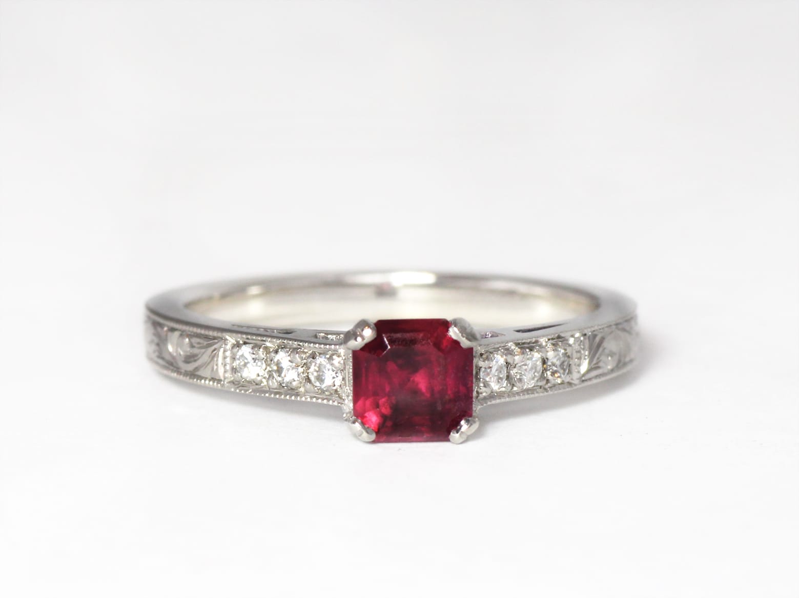 Recycled palladium with ruby and moissanites