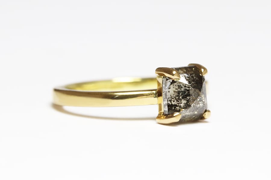 yellow gold with salt and pepper diamond Zoe Pook Jewellery