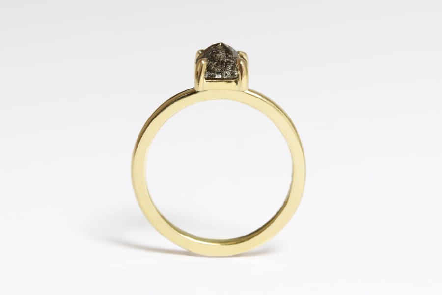 yellow gold with salt and pepper diamond Zoe Pook Jewellery