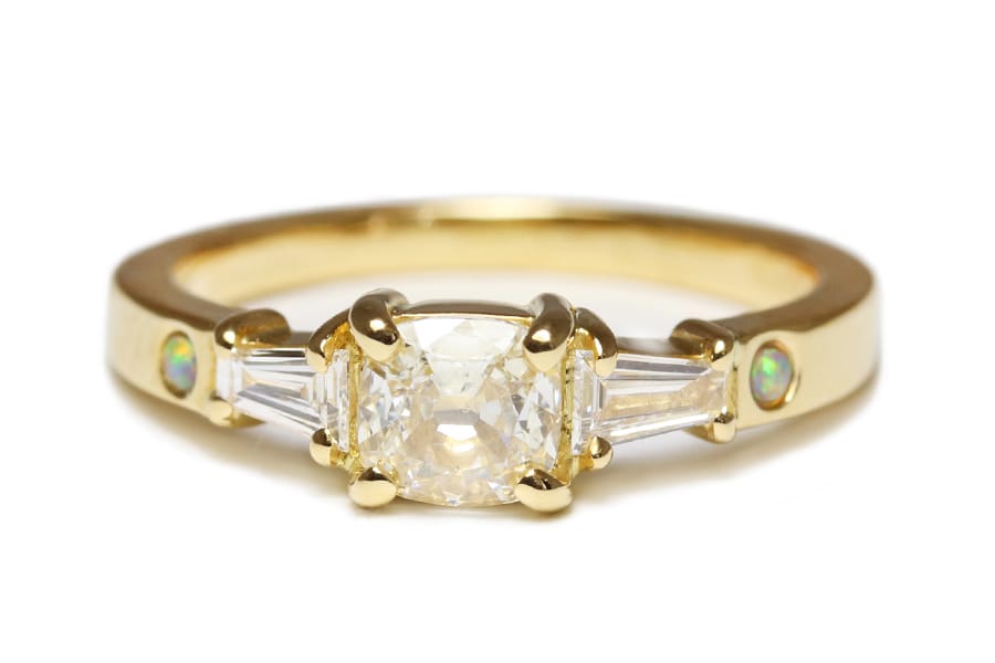 18ct Fairmined gold with diamonds and opals