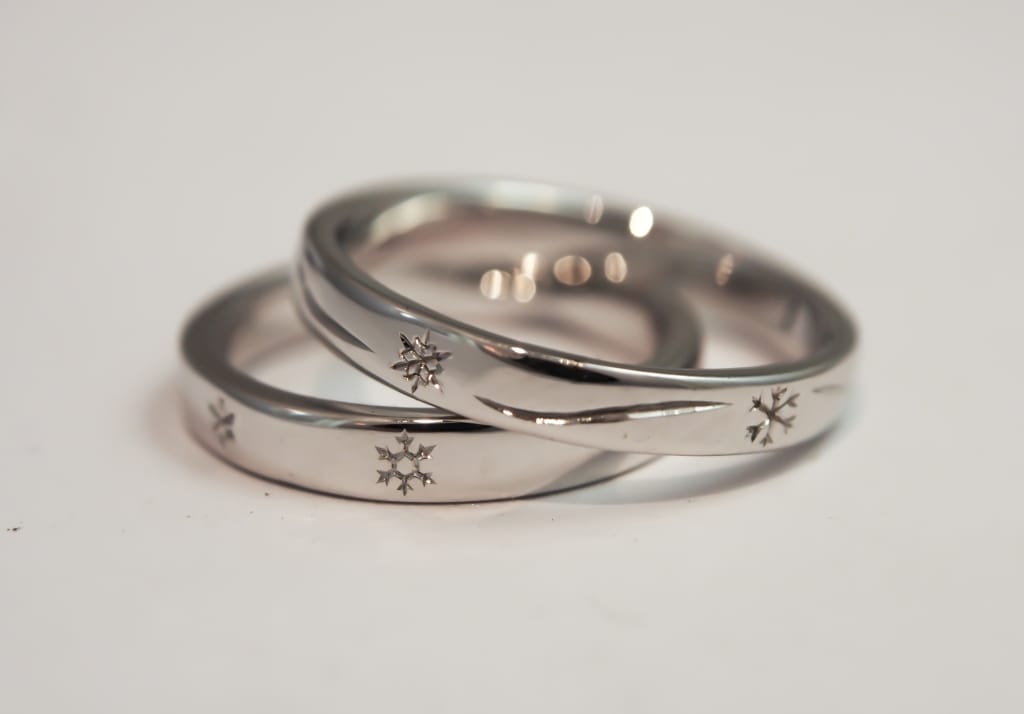 "Snowflake" wedding rings
