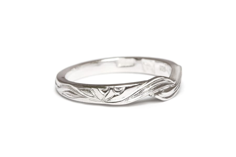 18ct white gold hand engraved