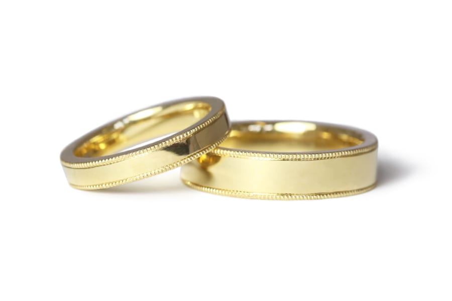 Yellow gold bands mill grain edge