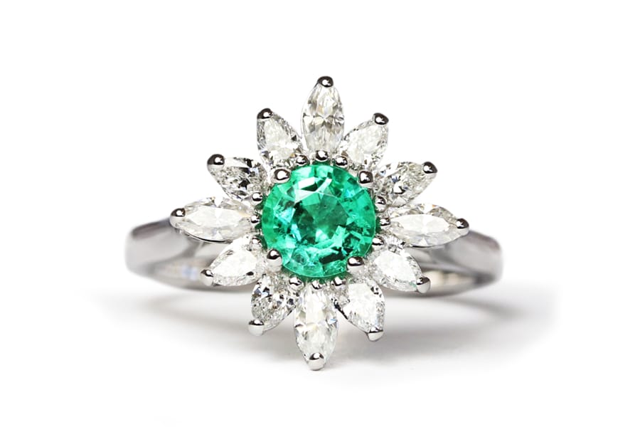 emerald and moissanite white gold ring