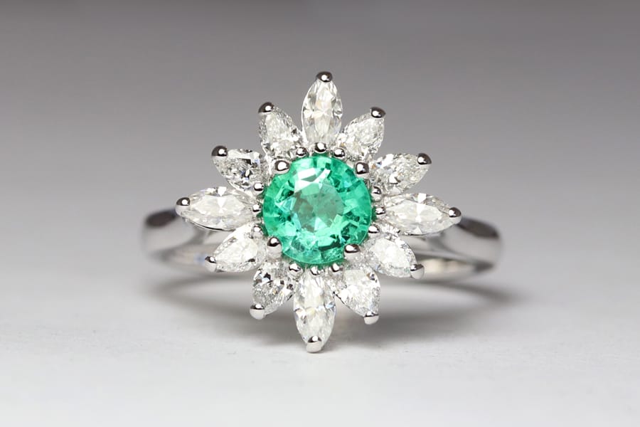 Emerald moisasnite diamond halo ring