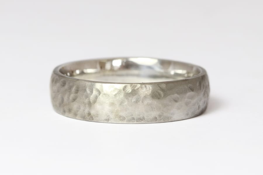 white gold fine hammered ring