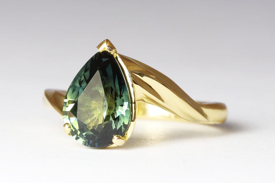 Yellow gold with pear parti sapphire
