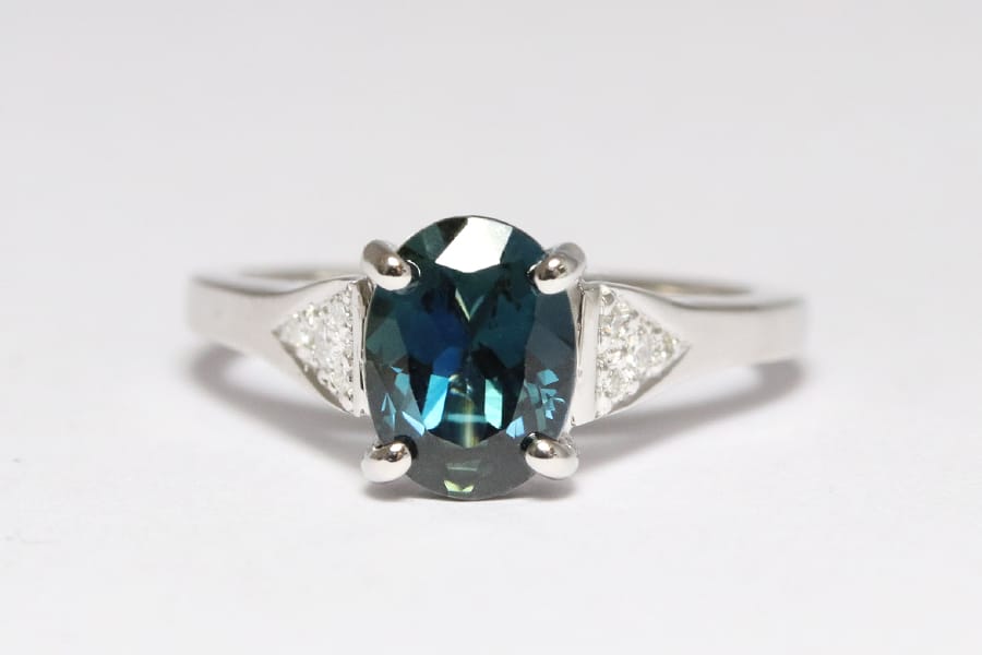 Platinum band with sapphire and diamonds
