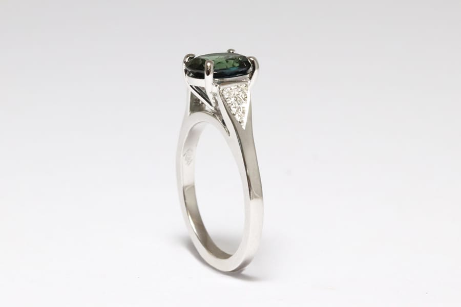 Platinum band with sapphire and diamonds