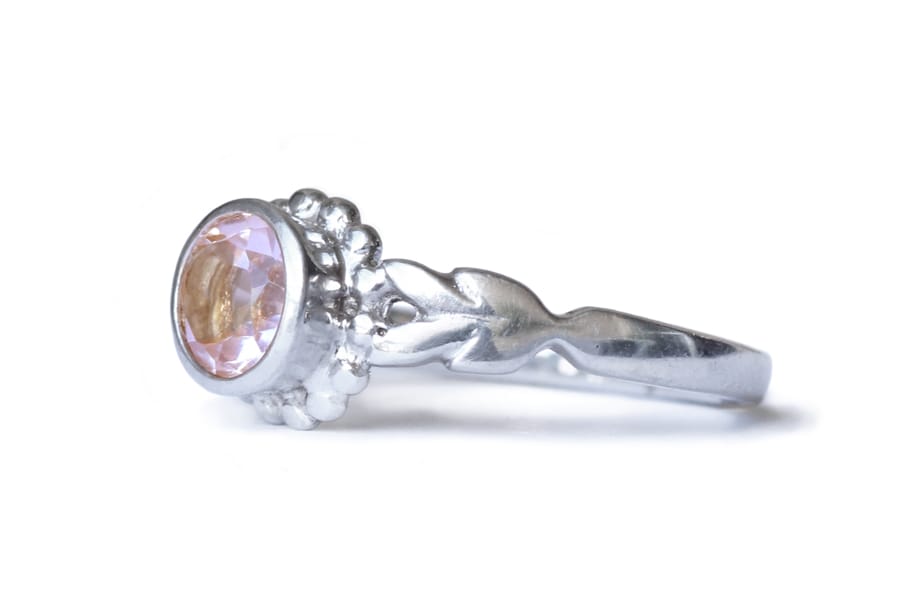 Rose quartz silver laurel ring
