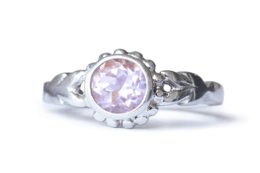 Rose quartz silver laurel ring