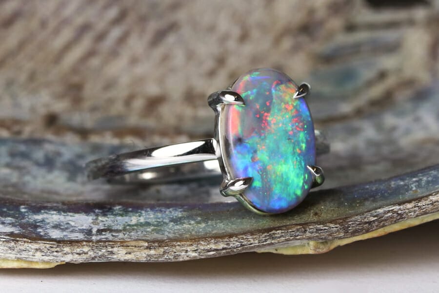 Aussie opal in white gold