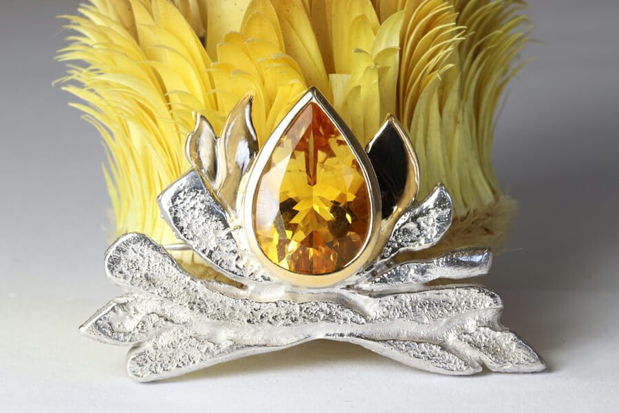 Citrine campfire brooch