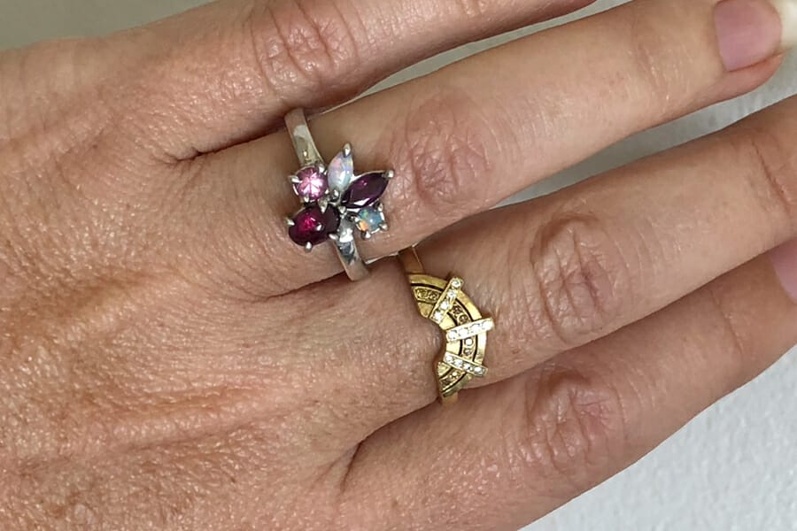 pink and opal cluster ring