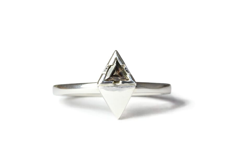 Bronze trilliant sapphire silver ring